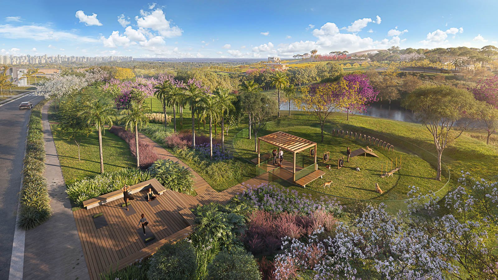 Imagine um lugar onde a natureza não é apenas vizinha, mas parte integrante da experiência: mais de 220 mil m² de áreas verdes, com cerca de 117 mil m² de APP preservada, lago com nascente, mata nativa e vista para o horizonte da cidade.