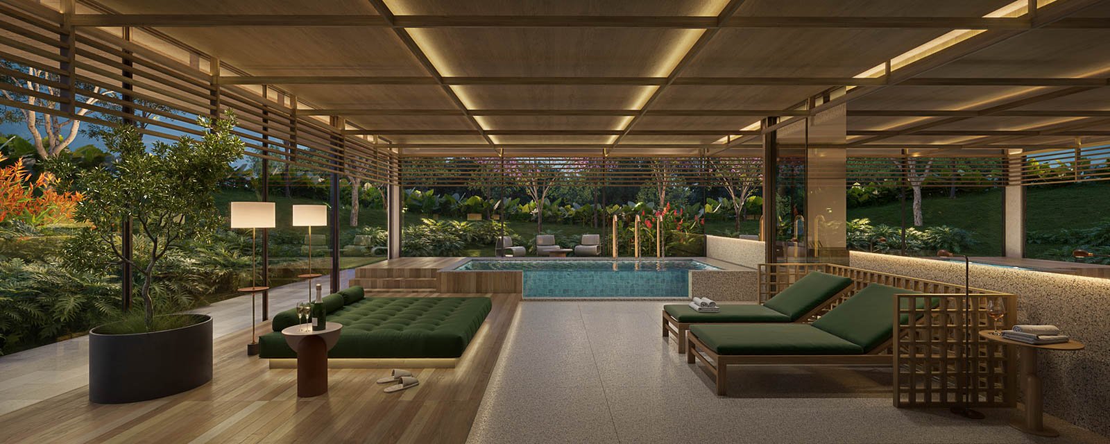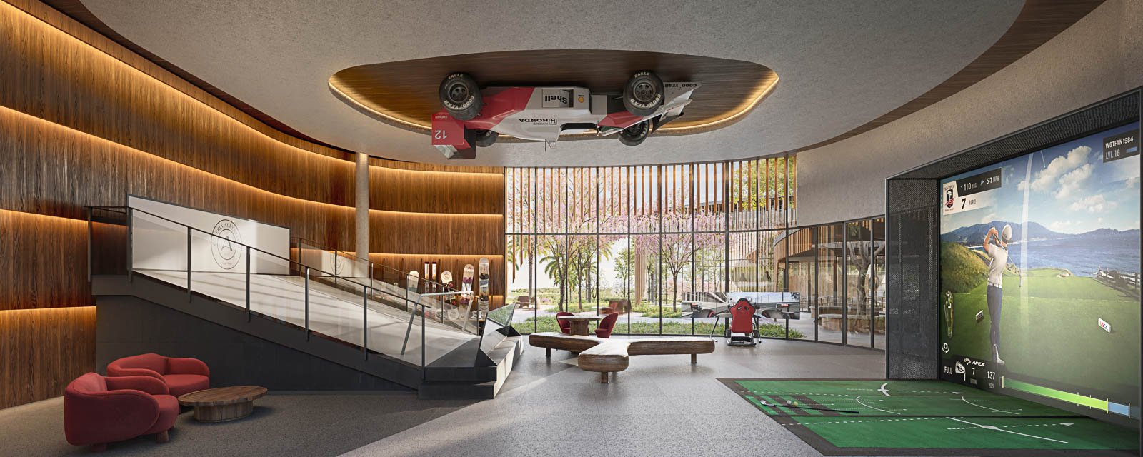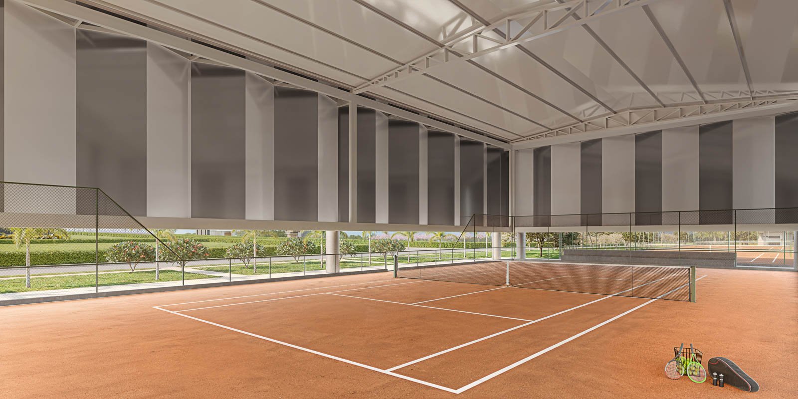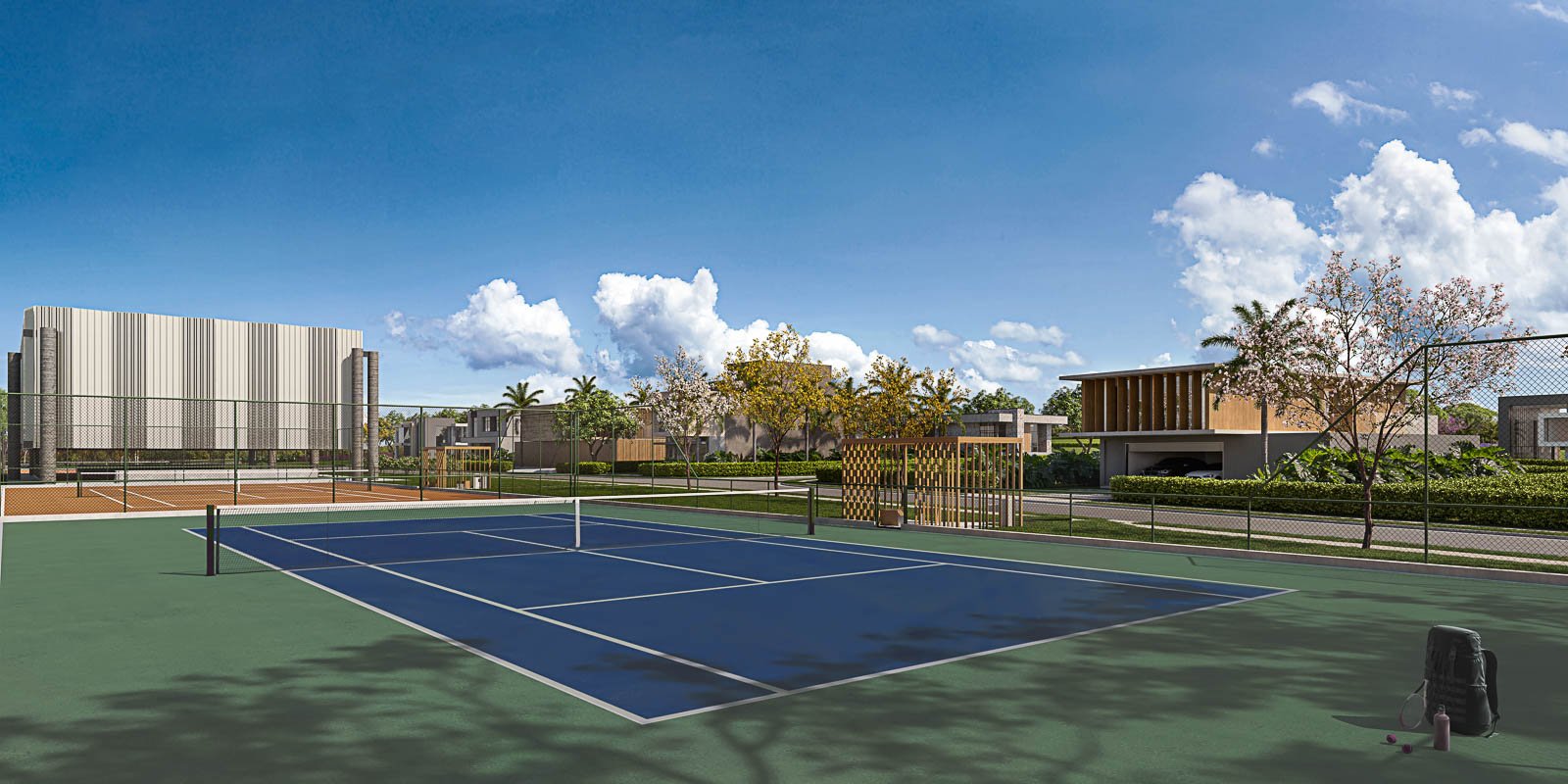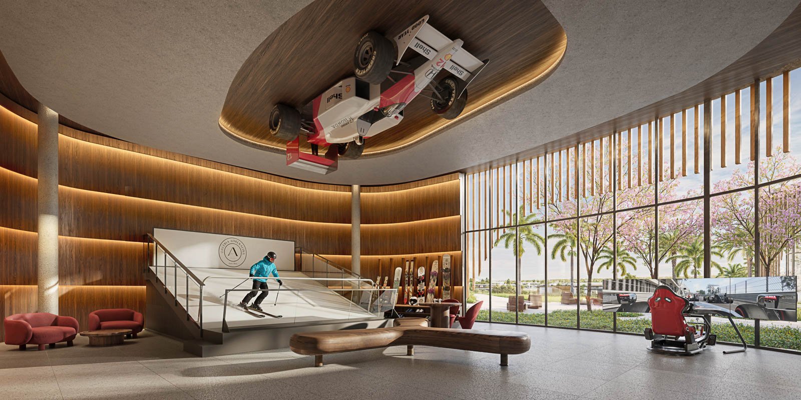 O lazer com identidade autoral vai além do tradicional: quadras de tênis (incluindo uma coberta), simulador de esqui e complexo imersivo, espaços para bem-estar, convivência e tecnologia que antecedem o futuro de morar com significado.