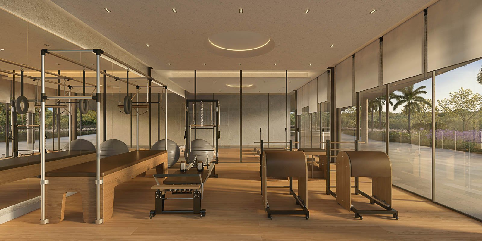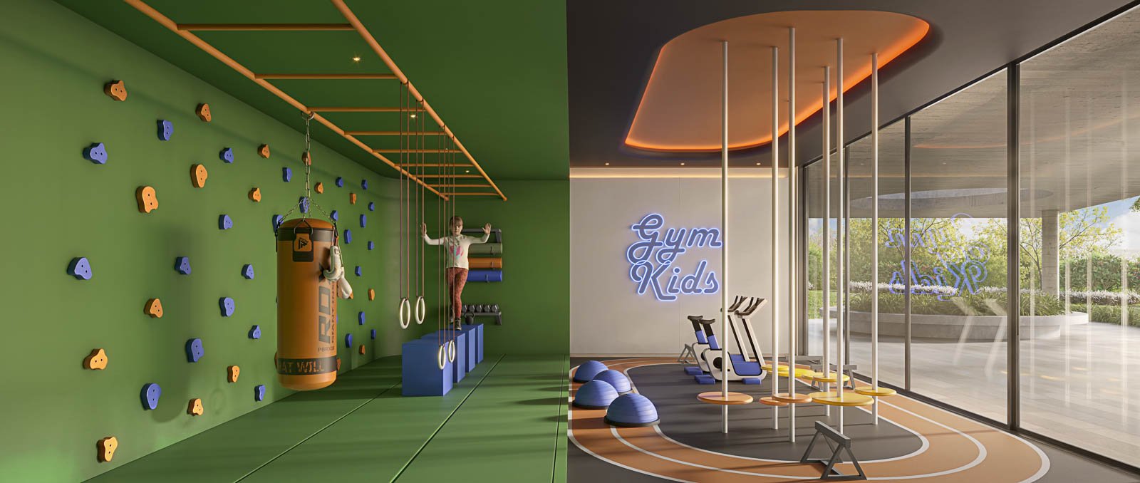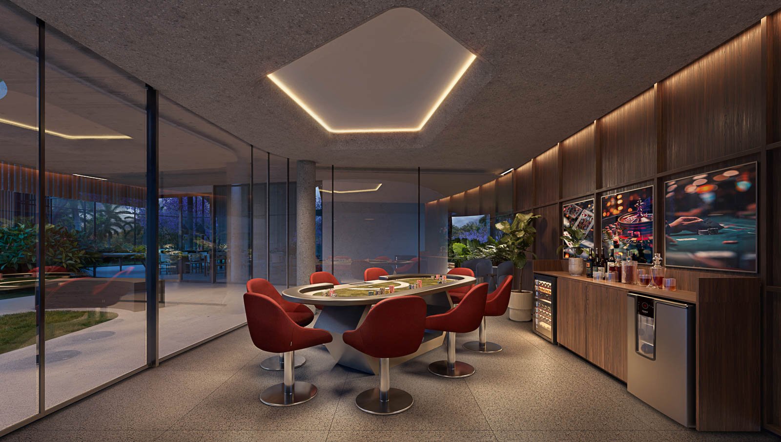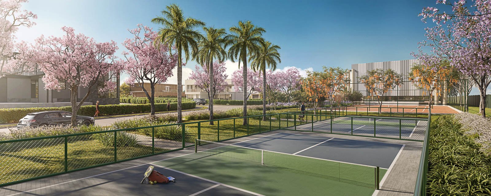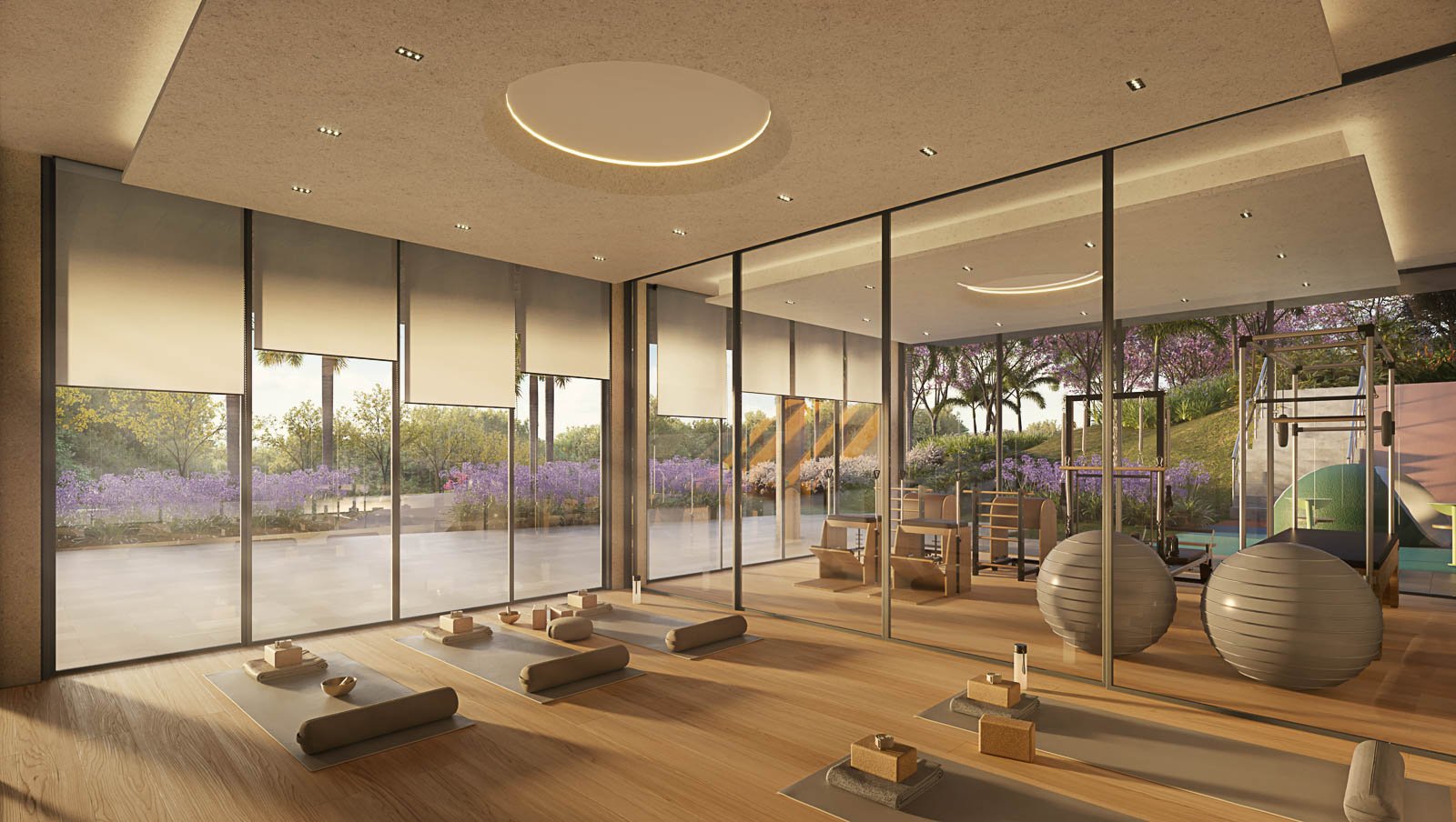 O lazer com identidade autoral vai além do tradicional: quadras de tênis (incluindo uma coberta), simulador de esqui e complexo imersivo, espaços para bem-estar, convivência e tecnologia que antecedem o futuro de morar com significado.